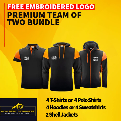 10 Item Printer Prime Premium Embroidered Workwear Bundle with Free left chest Logo. What’s Includded: