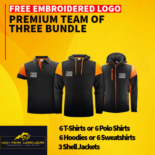 6 Item Printer Prime Premium Embroidered Workwear Bundle with Free left chest Logo. What’s Includded:
